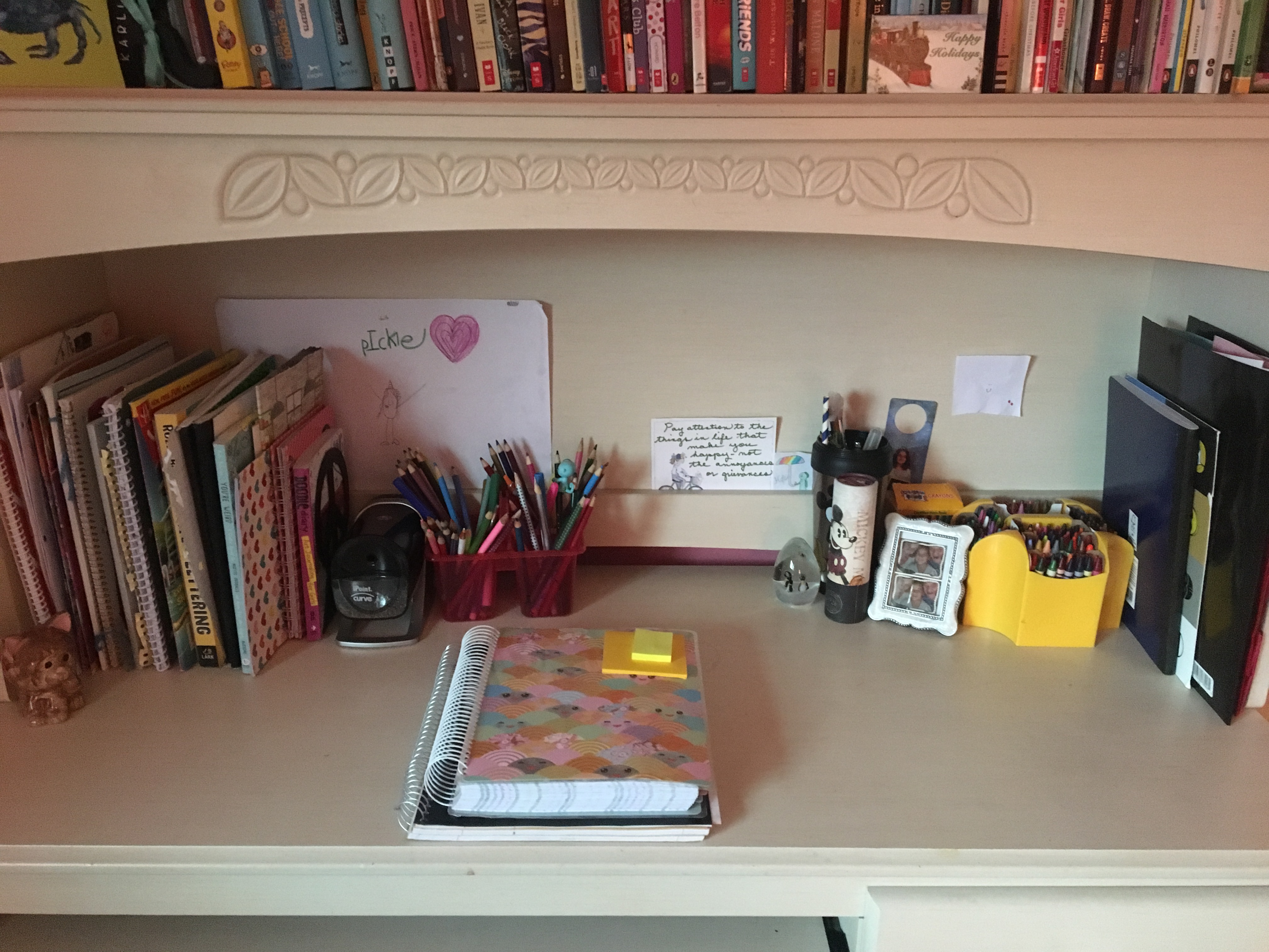 At times, when I walk into my daughter’s room I am overwhelmed by the journals and sketch books piled on her desk. If I edge into the room a bit more I will see caddies of pencils and markers, as the kid loves a good writing utensil. It’s awesome that I can open the door to her bedroom on any given night and catch her creating new story characters or writing an inspiring quote in a cool font. What is not so awesome is how these things can pile up. Perhaps her desk requires a tidying, or maybe some of these items need to be cleared out. Either way, when dealing with other people in your home, try this: “Just give me ten minutes!”