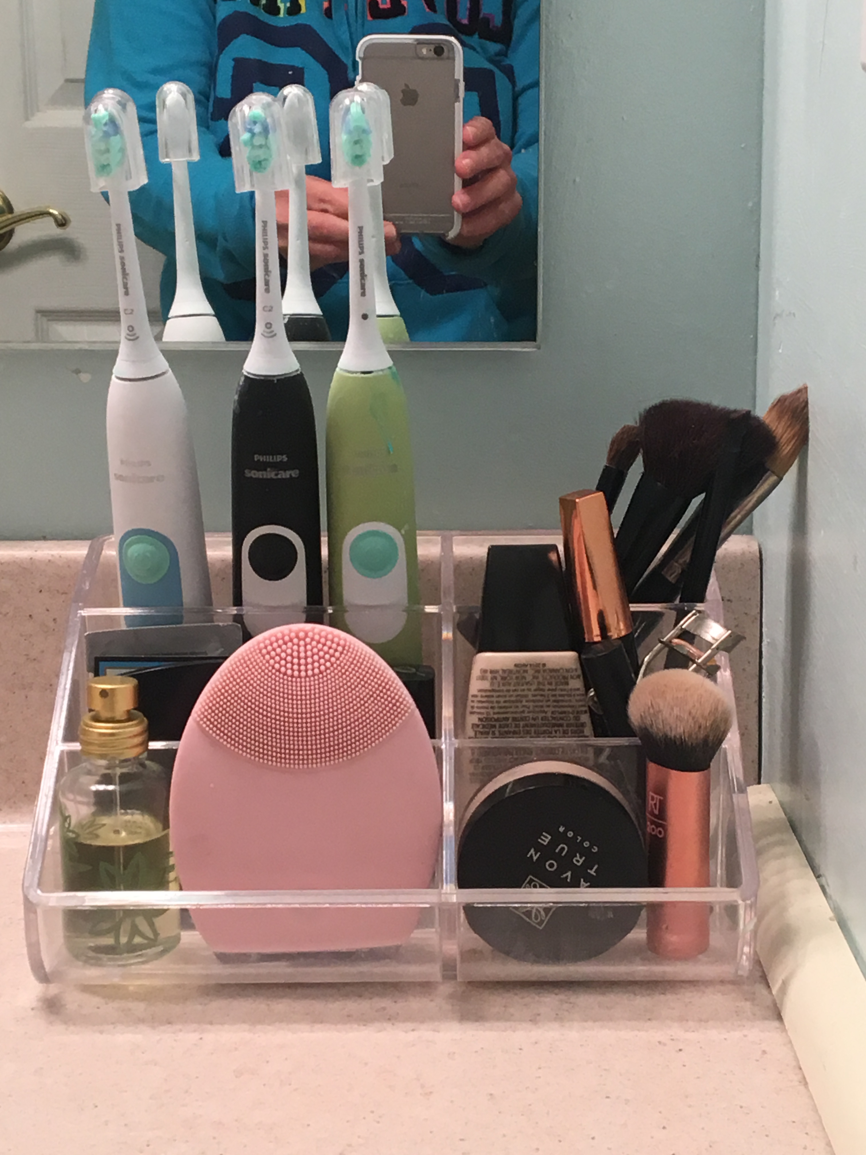 In my daughter’s room, we had thrown out dried up markers and a bunch of used notepads and realized, we don’t need this office supply caddy they had been stored in. I brought it into the bathroom. I now have my everyday makeup, our family toothbrushes, and my little face scrubber I thought was going to change my life and skin forever (it didn’t) perfectly set up and ready to go. Things aren’t falling over or lying messy on the counter, but are neat and ready for use. They sell bathroom caddies just about anywhere now, but this is something I already had, and I made it work. Another source of joy for me. I guess it doesn’t take much.