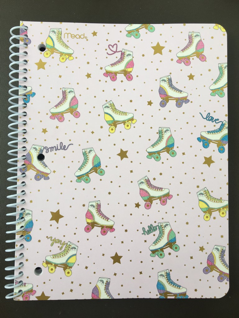 Let’s start with spirals. This roller skate notebook is totally an 80’s throwback. It sang to me so I decided to use it as my new food journal. I’m trying to take off these last 10 pounds, and jotting my food intake, as well as noting and journaling when there’s an overeat totally helps me focus on my goal. There is a great podcast by Corrine Crabtree called Losing 100 pounds with Phit-N-Phat, and she really goes into detail about how food journaling can assist in the process of changing habits and losing weight. Check her out.