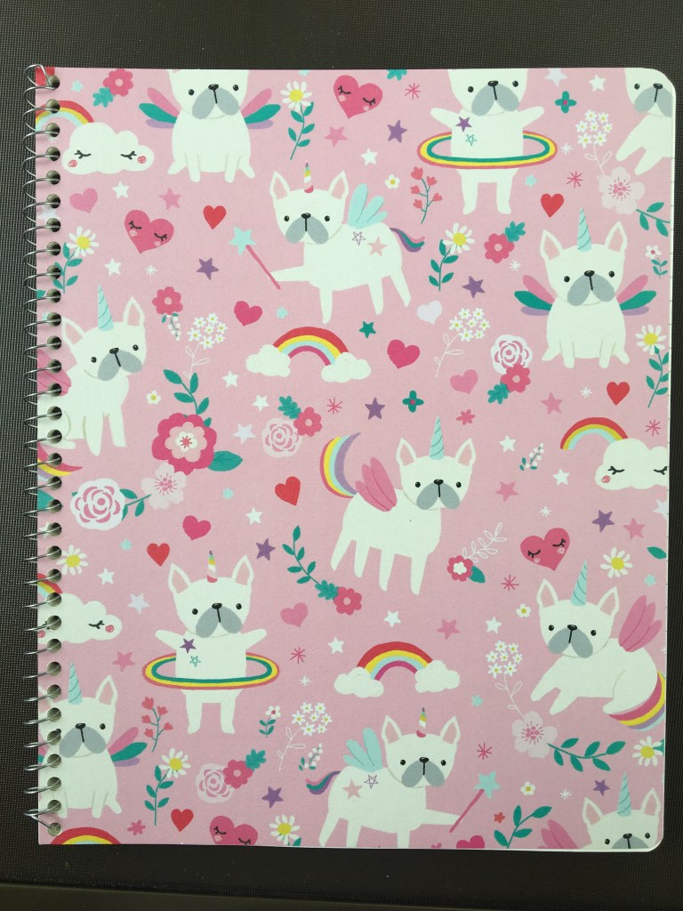 My unicorn-fairy-pugs (who thinks of these things? How much fun it would be to design spiral covers!) will be my notebook for upcoming classes and workshops I take. I am required by my profession to complete a certain amount of CEU’s each year, but I also read a lot for personal development and for my own learning. A notebook is always needed for these endeavors, especially because I am getting old and need to write things down in order to remember them! Has there been a class you want to take but have been putting off? A book you want to read that may require some notes? A nice spiral makes it more enjoyable and motivating.