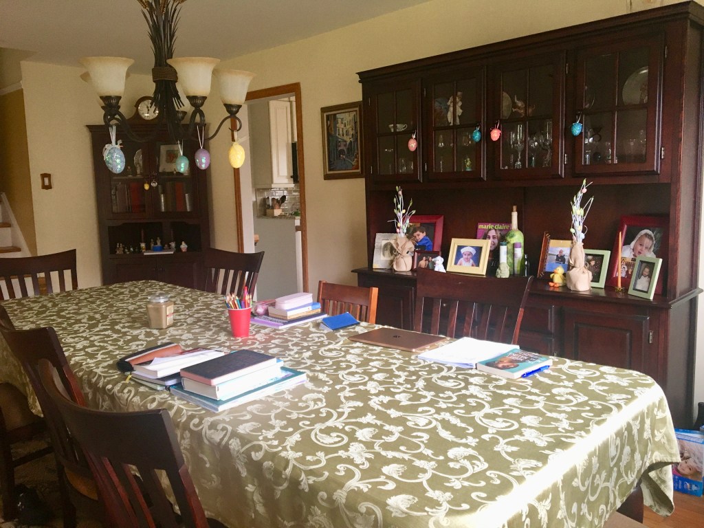 I was sitting at the dining room table with the kids, or should I say, I was at school with the kids, and we were all doing our work.