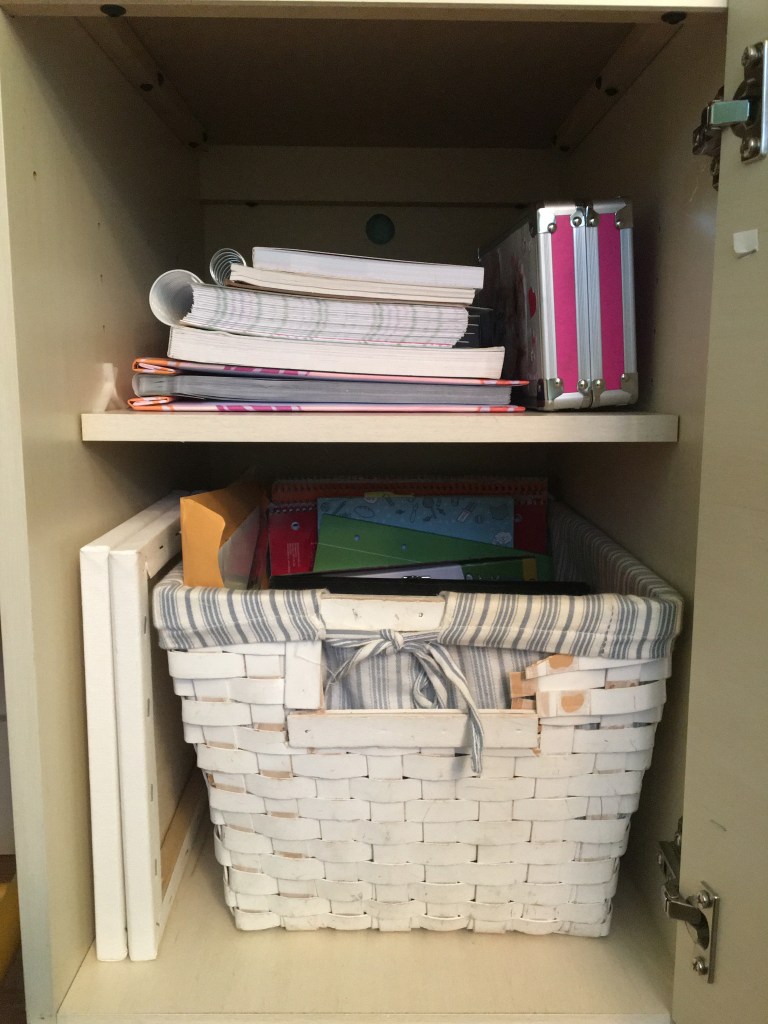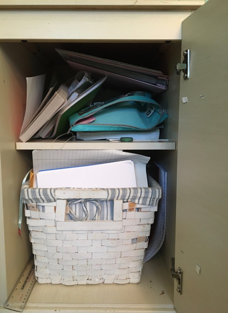 Take a look at this beauty, otherwise known as the inside of my daughter’s desk cabinet. We’ve been trying to get to this for days. At least I have. She could care less. While one would think I have so much more time to get to clearing out and organizing, it winds up I’m spending a large portion of each day engaging with the kids, making sure they are not constantly on their devices. Some days I marvel at my parenting skills and other days I simply fail spectacularly. But hey, it all evens out.