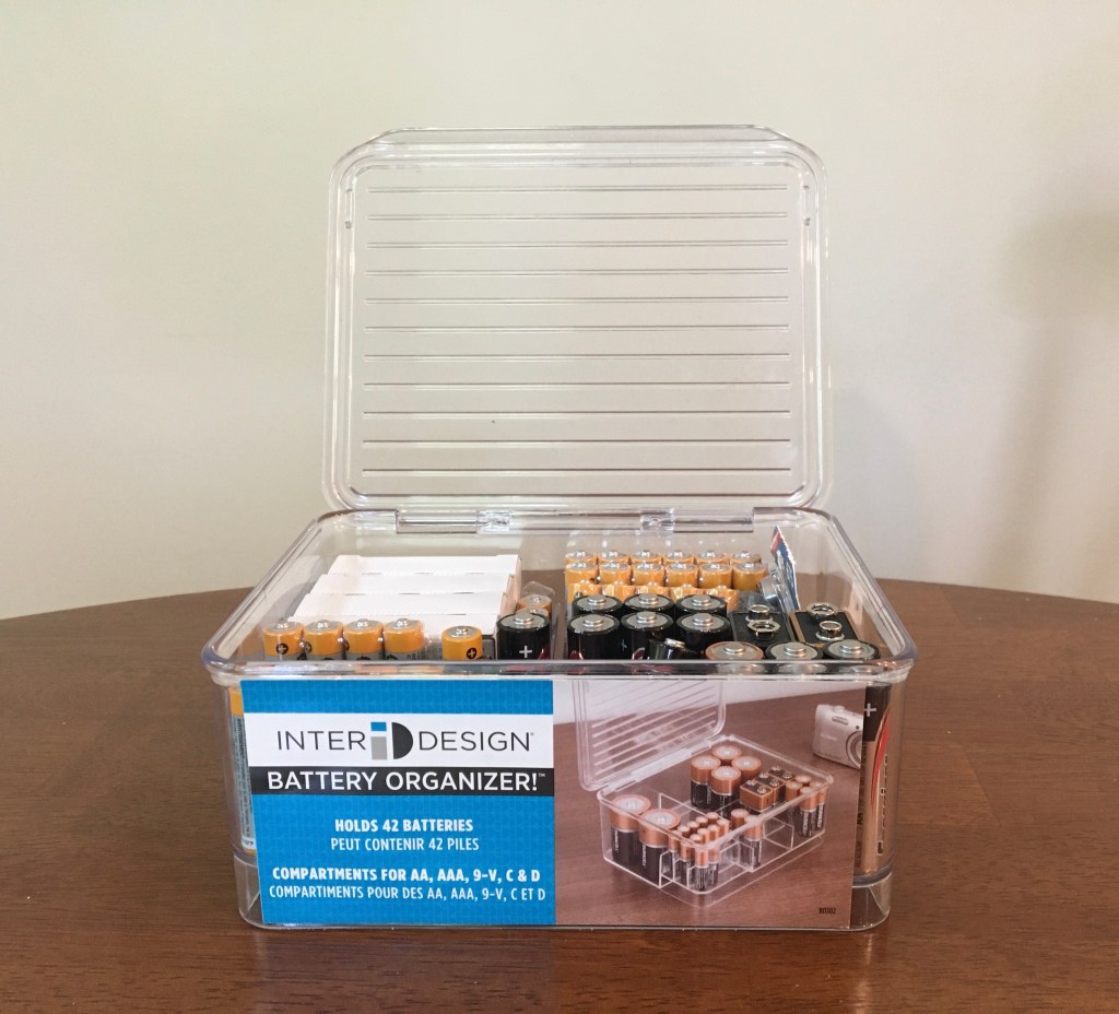A while back I had seen that video on Facebook where the exposed terminals of a battery come into contact with the exposed terminals of another battery and whammo! A fire starts. It scared the bejeezus out of me. I later learned that if a common household object made from metal comes into contact with battery terminals a blaze can also result. What? My house key and my AA batteries can start a fire! That was when I stopped mocking the plastic battery holders I had seen at the Container Store.