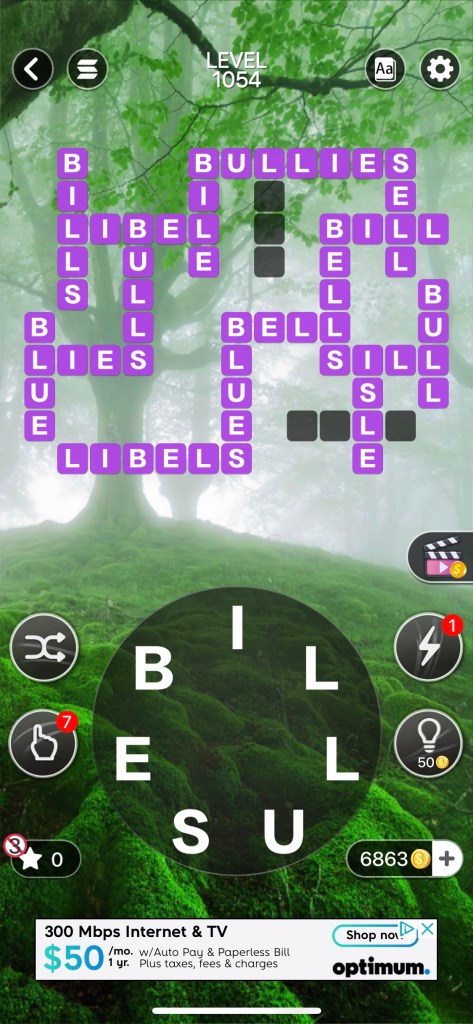 Cool, right? It’s kind of like a crossword puzzle without the clues. There are times when I’m on a roll. Use my coins to get a helpful clue? Hell no! I’ve got this! Last week I was in a tournament and was on such a good roll, I couldn’t get to bed on time. I stayed up until almost midnight. Not a good choice considering how tired I was the next day, but I placed 4th overall and was awarded 150 extra coins. Quick, call Mensa!