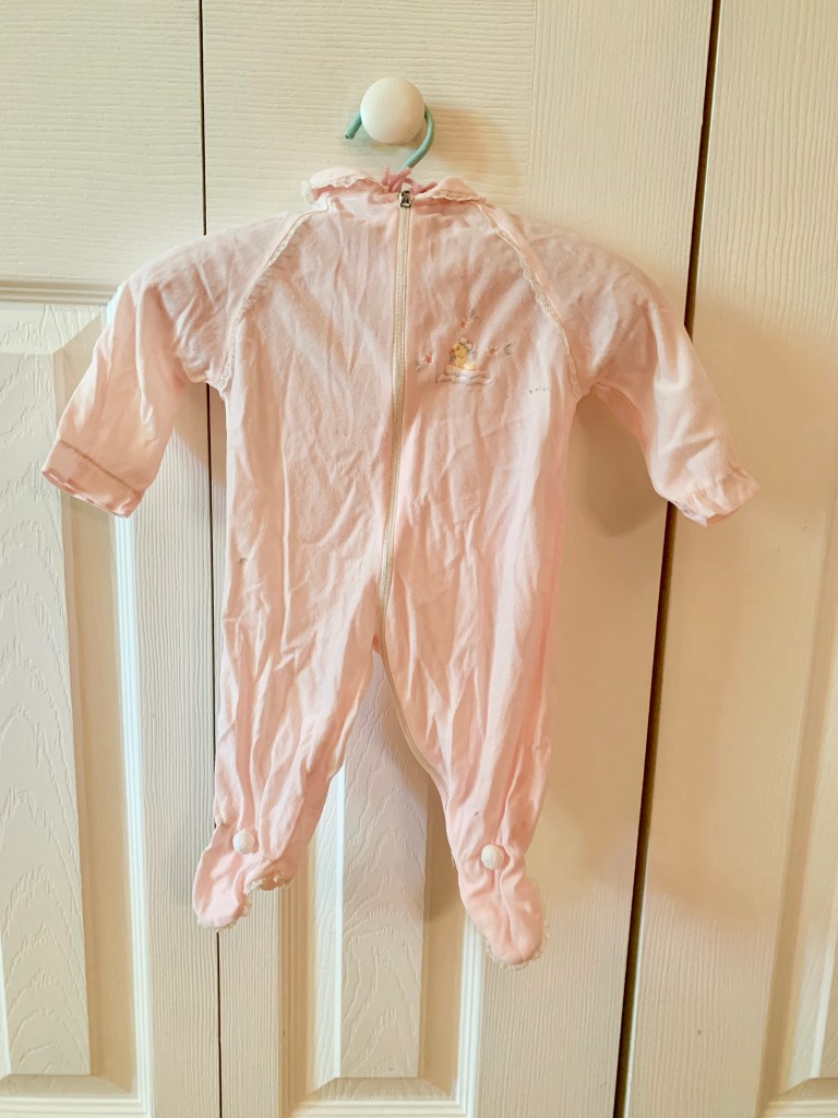 A while back, as I was deliberating whether to “keep or toss,” something struck me. I looked at the tiny, little stretchy and thought of my tiny, little self.