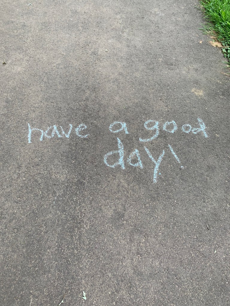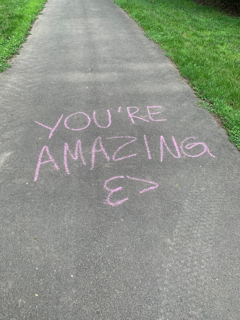 I’ve decided to dub this person the East Windsor Chalk Talker. Who ever you are CT, thank you for that drop of kindness. I’ll be sure to let it ripple.