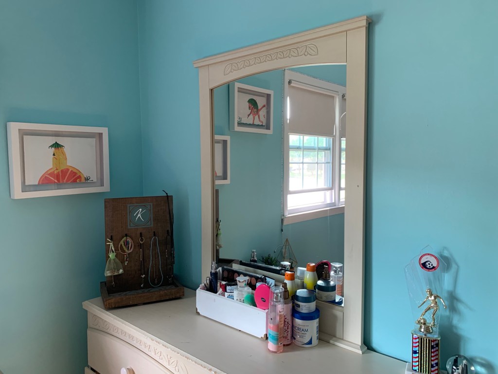 Now, when I really want to torture myself, I leave Karlie’s room and I go into Luke’s room. Luke has what I cringingly refer to as, a chubby mirror. I go in there when I want to keep it real. Yikes! Thighs anyone? I don’t saunter out of his room like a peacock, but more like a timid mouse, trying to make myself smaller and unseen. Based on the mirror’s image, I do not exude confidence, and as a result, no positive attitude spilling over into my day.