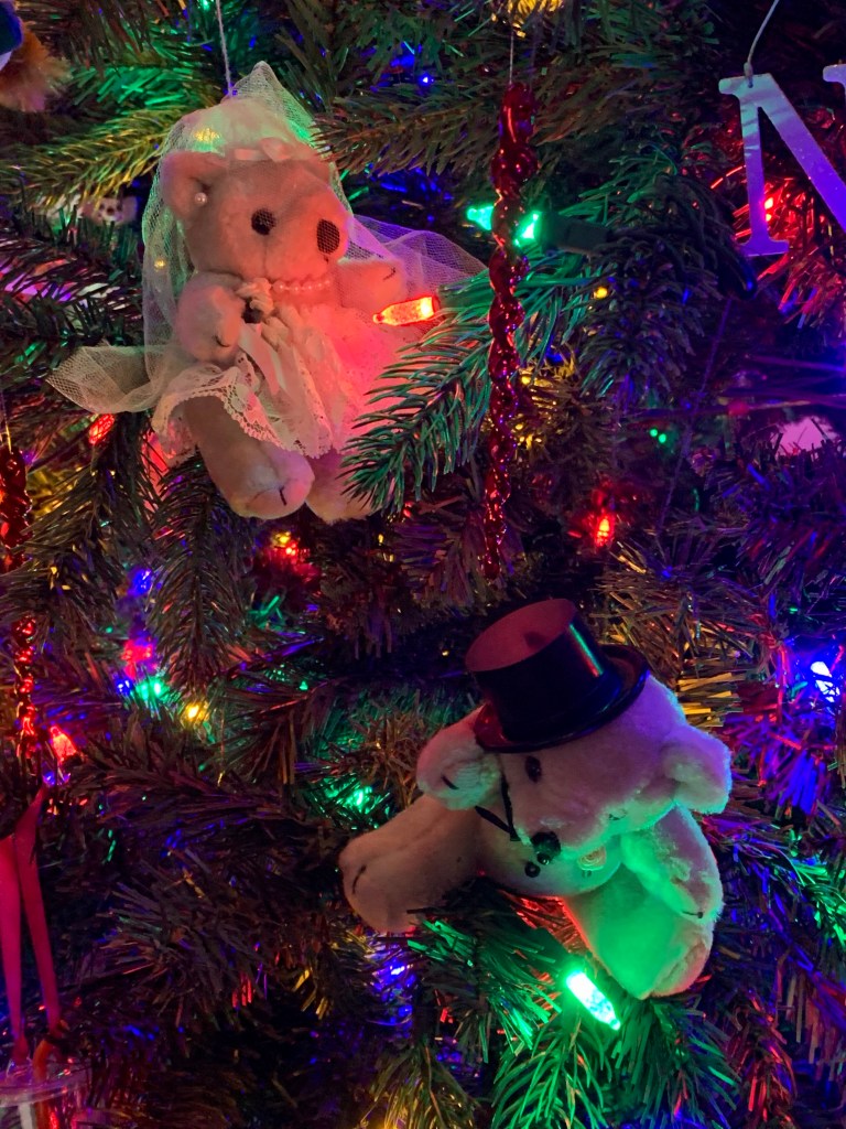 Donna and Carl are represented with the wedding teddy bears, the favors from their big day. We lost Carl on 911 and it’s really bittersweet to sit here and think back on the amazing years we all shared together. But I do, because despite the pain there is still so much joy. Ah, the Monday Night Football shindigs, cousin nights, bowling gatherings, Christmas sing-a-longs…pure joy.
